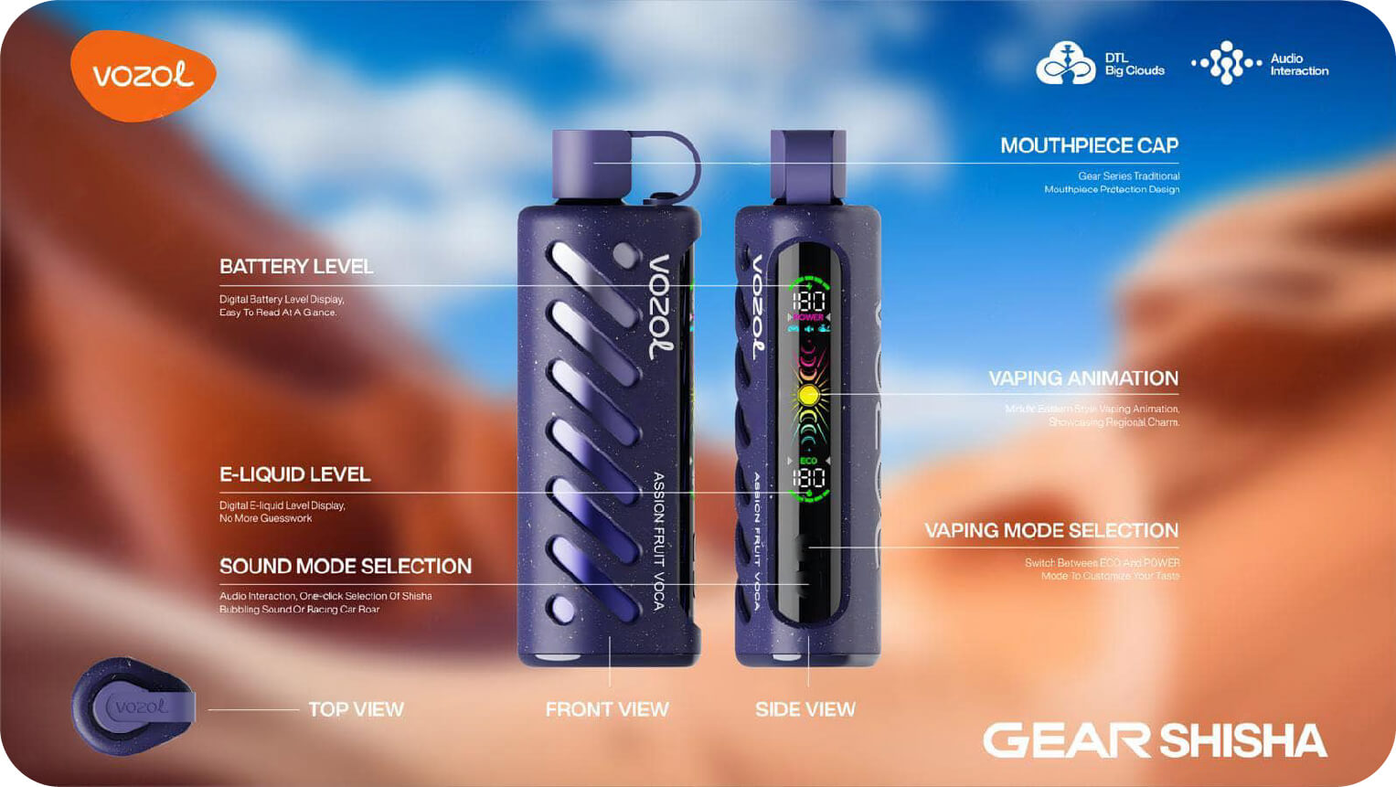 عناصر التصميم المبتكرة، مثل تقنية "التفاعل الصوتي" في جهاز VOZOL Gear Shisha 40000 التي تحاكي صوت فقاعات الشيشة، تضيف تجارب حسية غامرة. كما أن الميزات المحتملة الأخرى، مثل ملحقات الخرطوم المزدوج الخارجية المناسبة للتجمعات الاجتماعية وخزانات المياه الزخرفية المضيئة بتأثيرات الفقاعات، يمكن أن تعزز قيمة الترفيه والجاذبية البصرية على حدٍ سواء، مما يجعل المنتج أكثر تشويقًا في التجمعات الجماعية.