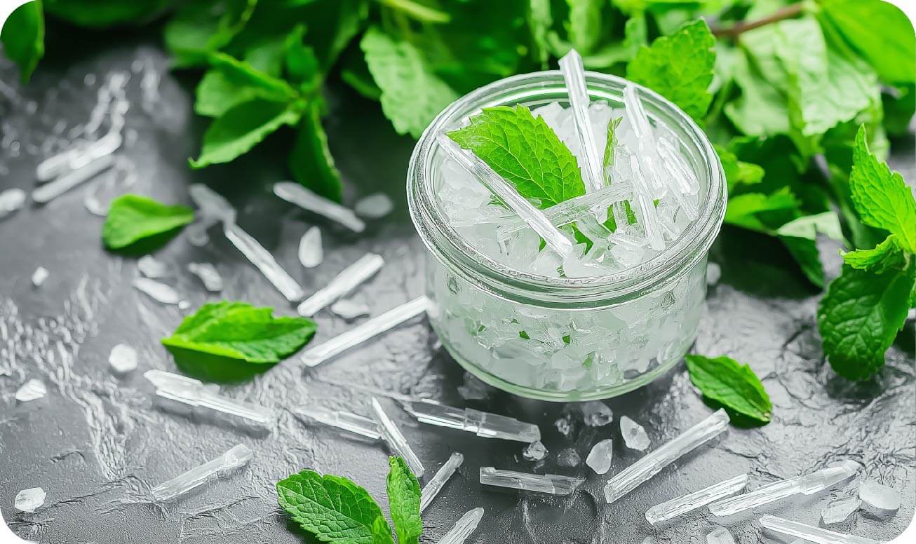 المنثول هو المادة الكيميائية في النعناع التي تمنحك إحساسًا بردياً في الفم. إنه يختلف عن أصناف النعناع مثل النعناع الفلفلي والنعناع المدبب؛ فهو ليس نباتًا بل المركب النشط الرئيسي المستخرج من النعناع، المسؤول عن البرودة القارسة وضربة الحلق المكثفة - يُستخدم غالبًا لمحاكاة التأثير البارد لسجائر المنثول دون حلاوة مضافة.